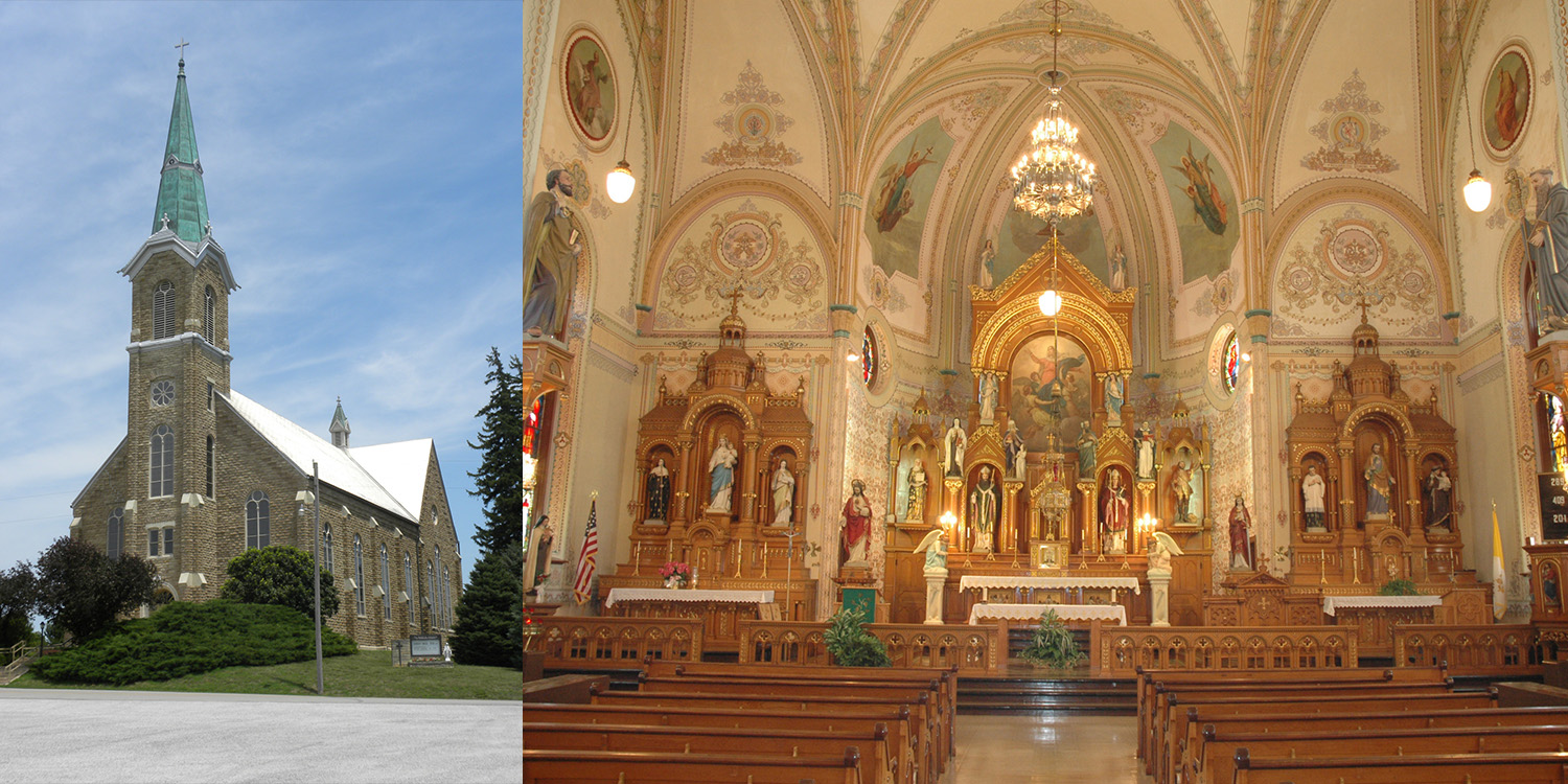 Exterior and interior photos of St. Mary’s Catholic Church, St. Benedict, Kan.