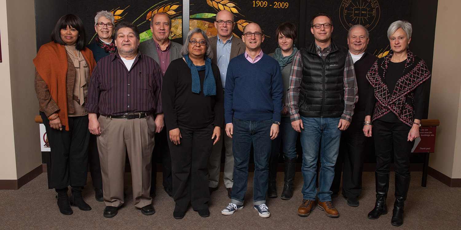 The Hesston College Presidential Search Committee: Addie Banks (Bronx, N.Y.), Marie Morris (Anderson, Ind.), Ramiro Hernandez (Washington, Iowa), Carlos Romero (Goshen, Ind.), Carlota Ponds (Hesston), Barth Hague (Newton, Kan.), Ken G Kabira (Naperville, Ill.), Kendra Burkey (North Newton, Kan.), Luke Roth-Mullet (Hesston), Tim Burkholder (Goshen, Ind.) and Lynette Bontrager (Archbold, Ohio). Not pictured: Tony Brown (Pittsburgh, Pa.) and Chuck Neufeld (North Newton, Kan.).