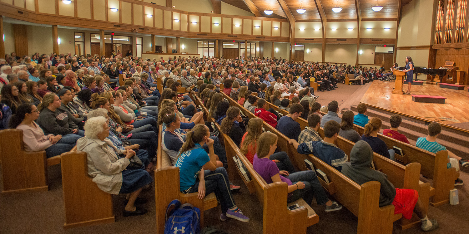 About 700 people gathered at Hesston College Oct. 5, completely filling the Hesston Mennonite Church sanctuary, to hear New York Times bestselling author Regina Calcaterra share her story of child neglect, interaction with the foster care system and how small acts of caring make a difference to a child in need. Led by the college’s First-year Experience course, Calcaterra’s memoir Etched in Sand has served as the community read for the college and greater community during the fall 2015 semester. Along with the college community and many interested individuals, groups participating in the community read included book clubs from Hesston Public Library, Newton Public Library and the Moundridge High School senior English class.