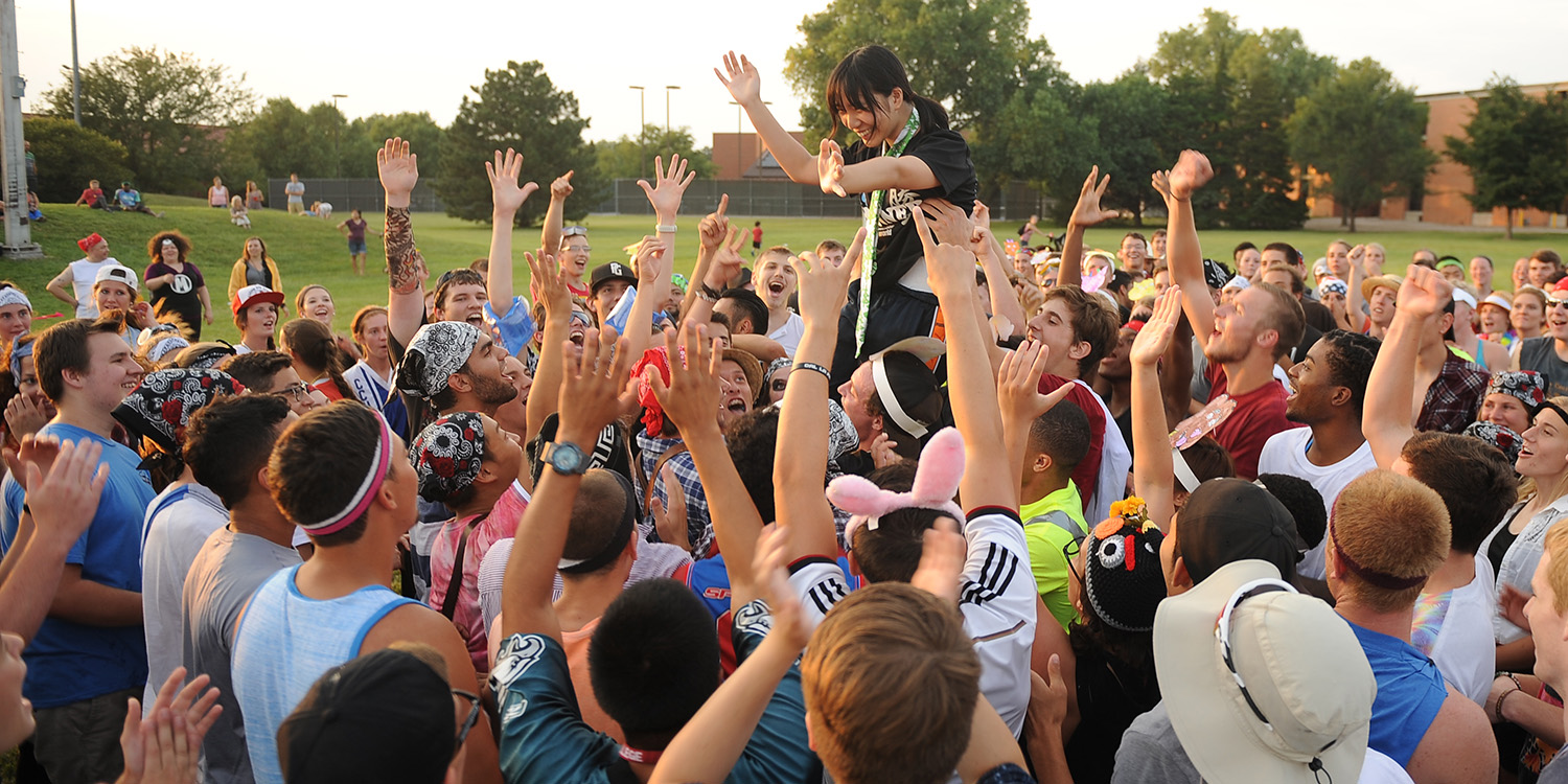 Hesston College welcomed new and returning students to campus and a new year during Opening Weekend Aug. 14 to 16. Activities throughout the weekend helped students, parents and others new to Hesston College become oriented with the community. The theme of being “greater than” self, worldly demands and fears and anxieties was a theme carried out through the weekend and addressed by speakers Michele Hershberger, Bible and ministry faculty member, at a Friday evening Opening Celebration and by Hesston Mennonite Church pastors John Murray and Amy Nissley Stauffer during Sunday morning worship. The 2015-16 theme verse from Mark 12:30-31 also speaks to the greatest commandment – Love the Lord your God, and love your neighbor as yourself.