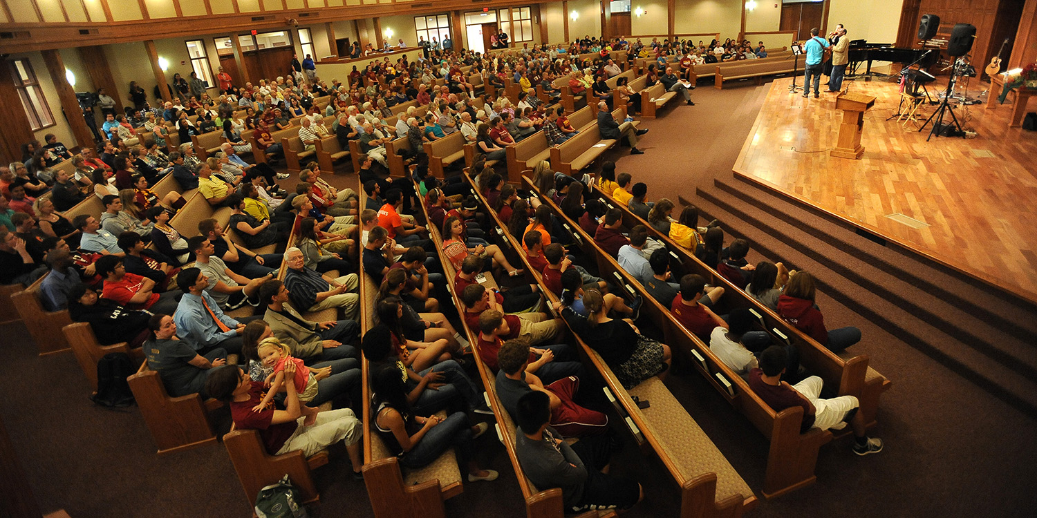 Above - The official opening of Homecoming Weekend 2014 was Friday morning chapel with alumnae Tony Brown ’69 and Herm Weaver ’79 sharing songs and stories that draw from life experiences that started at Hesston regarding changing perceptions of inclusion and diversity.