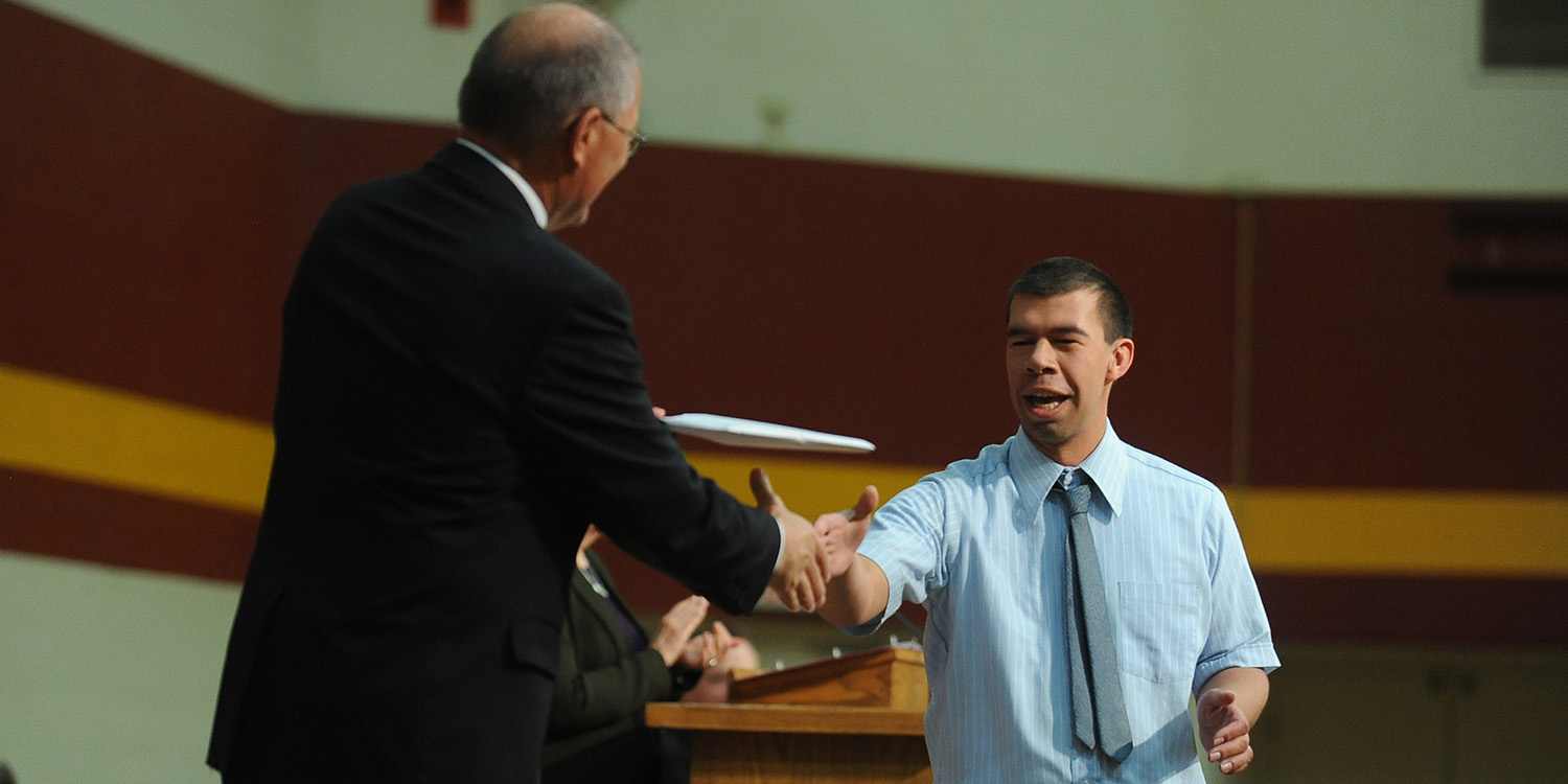 Zehr has Williams syndrome, a genetic condition characterized by medical issues, developmental delays, learning disabilities and a highly social personality. But none of his would-be roadblocks ever got in his way of achieving success at Hesston College.